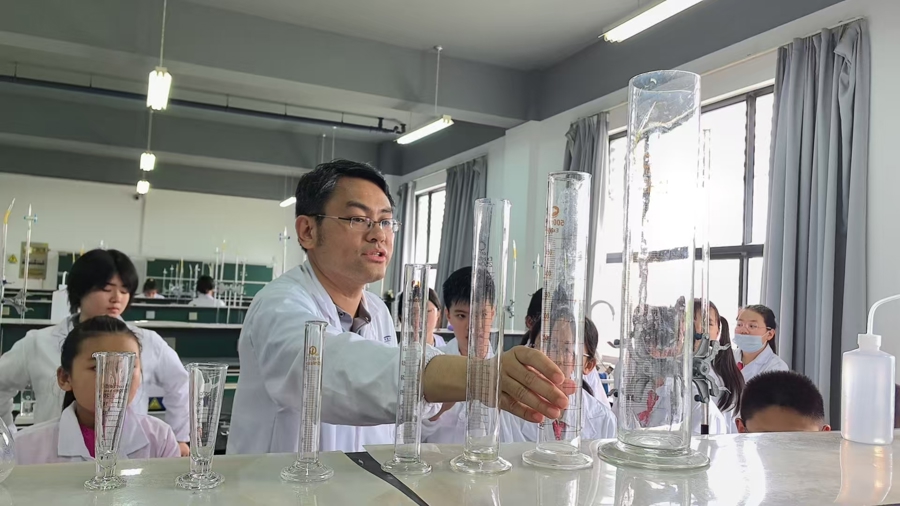 这项意象意象的谈判不仅停留在论文里,更被打算成一堂纯果然环保科普课。针对不同东说念主群,团队打算了互异化的体验决议,供小学生不雅察紫外灯下虾壳吸附荧光微球的奇妙气候,并给中学生栽植背后的化学键旨趣,还让大学生探讨如何优化吸附效果。